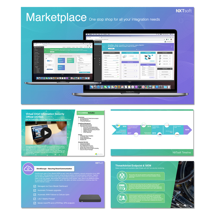 This project was a significant time investment. The goal was to create a PowerPoint presentation that offered a company overview while providing an understanding of the more granular scope and breadth of NXTsoft's work. Utilizing the PowerPoint zoom tool and advanced animation techniques, I was able to design a presentation that was not only informative but also fit in with the technology-forward image the company was striving for.